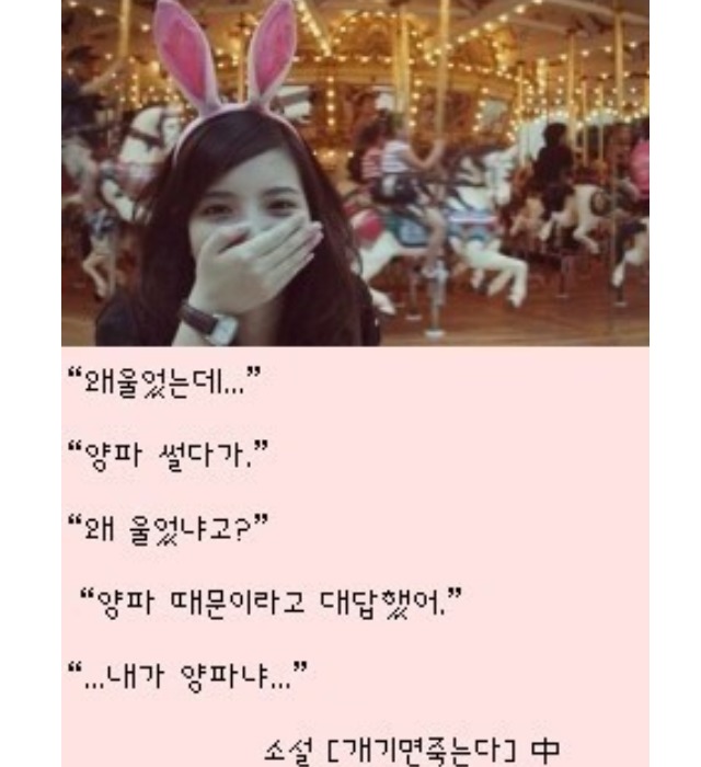 "양파 떄문이라고 대답했어."